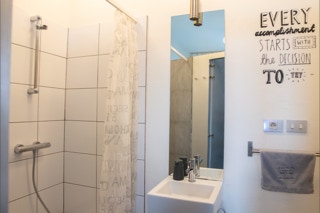 Chaque chambre a sa propre salle de bain avec douche, lavabo et toilettes privés.